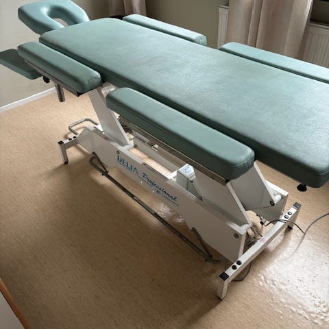 Med 3 motorer för att reglera höjden på båren, ryggstödets lutning och den centrala fällningen med handkontroll.