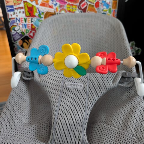 En gullig och rolig leksak som din bebis kommer att älska! Din bebis kan nyfiket titta på och leka med de färgglada kulorna och figurerna. Barnet snurrar enkelt på leksakerna och de roliga ögonen lockar fram leenden och skratt. Genom leken lär barnet också känna sin kropp och utvecklar sina motoriska färdigheter. Lekbågen är enkel för en vuxen att sätta fast och ta loss och passar både Babysitter Balance Soft och Babysitter Bliss.