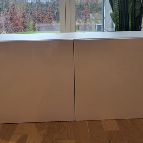 Den har en repa längst ovansidan av tv-bänken som syns (se bild) men som samtidigt döljs när tvn står på bänken då tänker man inte på den lika mycket