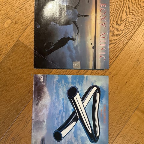 En samling av vinylskivor med olika artister och album. Innehåller olika musikgenrer och stilar, med varierande omslagsdesign och skivtitlar. Passar för musiklyssnare och samlare.