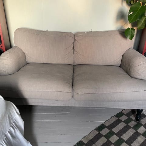 Rödbrun tresits soffa till salu. Soffan är i mycket välvårdat skick. Finns i Almunge, Uppsala kommun.