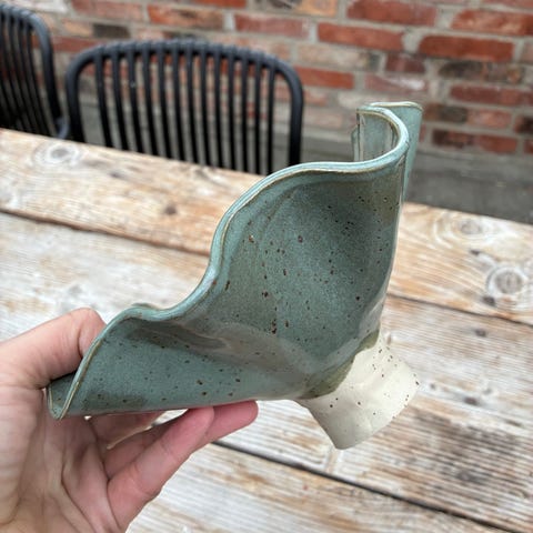 Den här är för en modig person som gillar blommor och att sticka ut och vill tillbaka till 80-talet. Vas /Skål toppad med en blomsterfakir med tre svanar i vitt porslin. Från Portugal av märket Elpa Alcobaça.