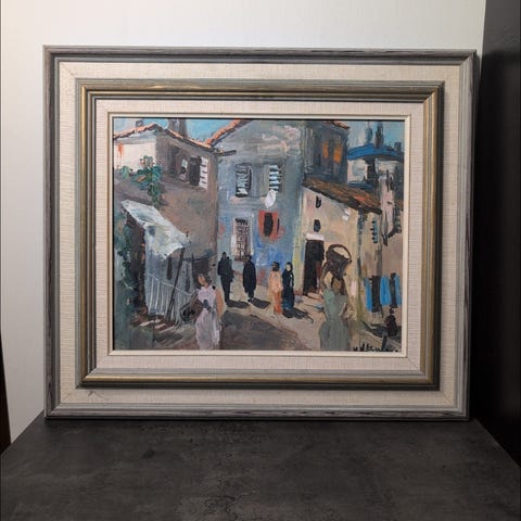 Gammal Oljemålning Gårdsmotiv - Signerad Gunnar Larsson 1938 - Tavla Konst