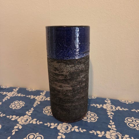 Vackert grönmönstrad och stilren vas i stengods från Höganäs. I bra storlek.
