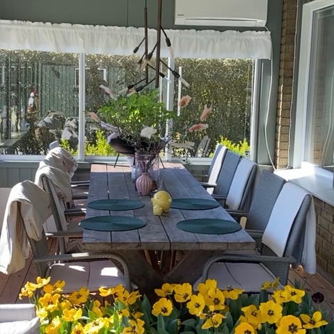 Bordet är egendesignat tillverkat av snickare och målat i "franskt grönt"