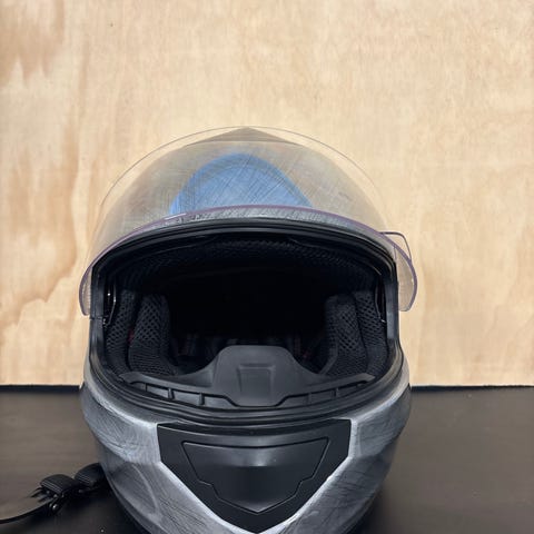 Raven hjälm som använts till moped. Köpt ny 2022. Har några mindre repor, syns på bilderna. Glasögon ingår men väl använda och med några repor. Storlek S 55-56