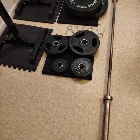 Gorilla Sports viktset som består av viktskivor i olika storlekar och en skivstång. Vikterna är : 2,25kg 4st , 2,5kg 7st , 5kg 3st , 10 kg 2 st och 15kg 2 st.och är svart till färgen. Viktskivorna har handtag för enklare hantering. Passar för styrketräning och hemmabruk. Säljes komplett endast!