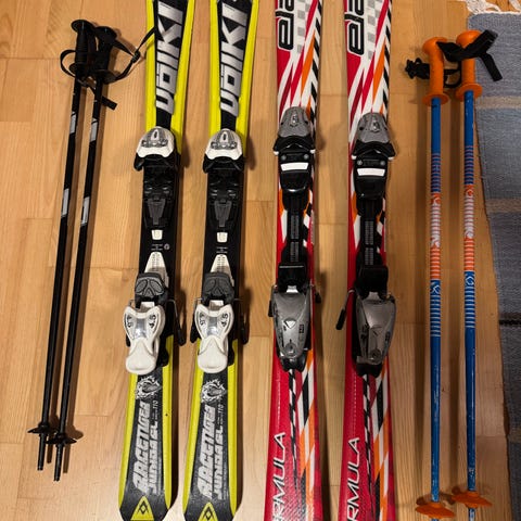 Lättåkta slalomskidor för barn. Enkla bindningar att justera. 110 cm. Kan skickas.
