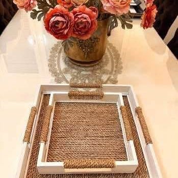 5 st serveringsbrickor i glas säljes. 2 st 53x31 cm 500 kr styck, 1 st 42x25 cm 400 kr, 1 st 32x21 cm 350 kr och 1 st 32x12 cm 250 kr.