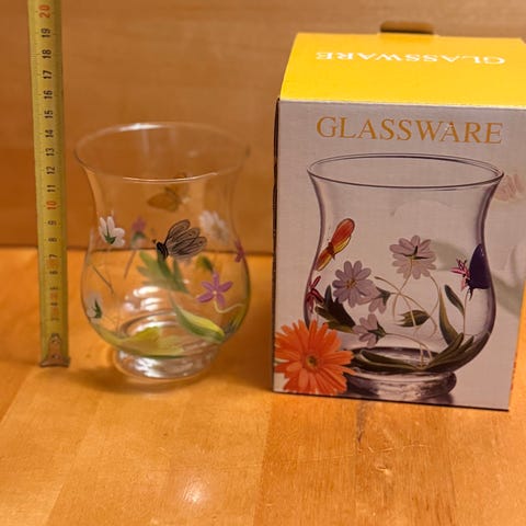 Detta är en orkanljusstake i glas.