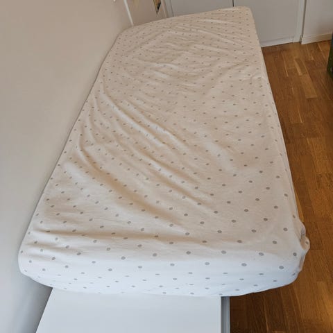 Madrassen är i princip oanvänd. Den har legat i sängen, men ingen har sovit på den eftersom mitt barn inte ville sova ensam. Madrassen är i mycket fint skick och säljs i originalförpackning.