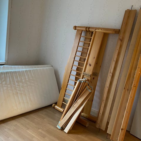 Malm sängbord bortskänkes. Katt finns i hemmet. Hämtas i Stuvsta/snättringe