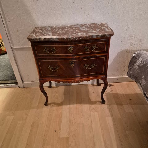 Liten nätt rokokobyrå troligen från 40-50 talet , fint skick inga skador med marmorskiva