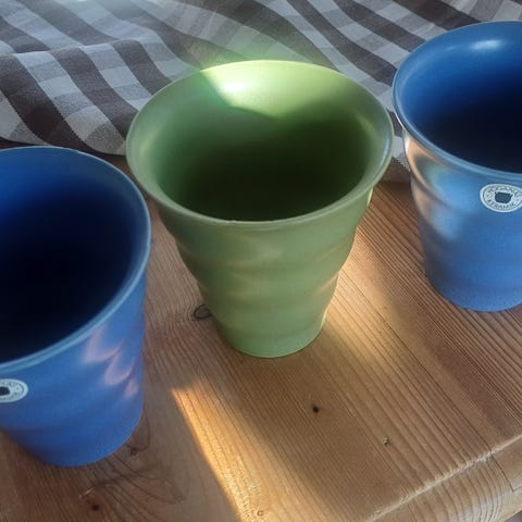 Höganäs grön Kaffe/Tea servis 5 muggar + sockerskål med trälock o mjölkanna