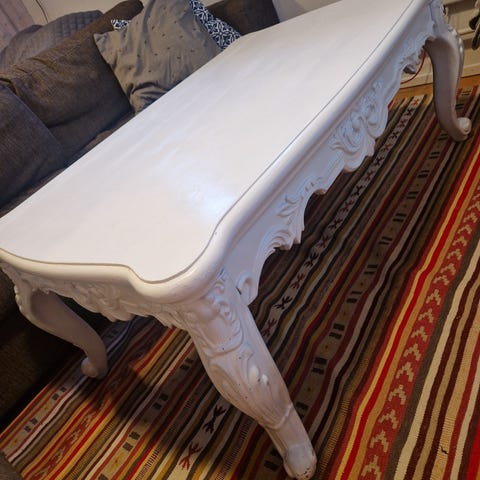 Charmigt bord med vackra detaljer. Finns lite slitage på bordsskivan, se bilder. Fullt användbart.
