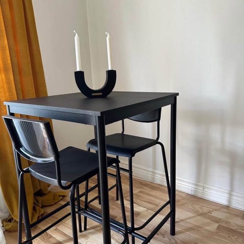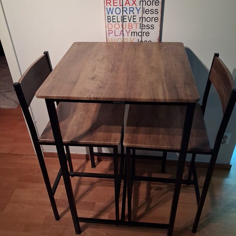 Helt nytt barbord. Skivan är i svart ask och stommen i svart metall. Säljes då det är fel storlek för vårat kök.