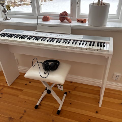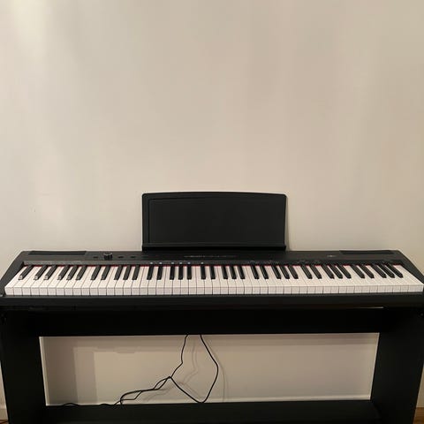 Yamaha P-115 Digitalpiano med 88 tangenter. Pianot är sparsamt använt. Stativ och pedal inkluderas liksom tre pianoböcker för nybörjare; Pianobus 1, 2 och 3. Digitalpianot är lämpligt för både nybörjare och mer avancerade spelare.