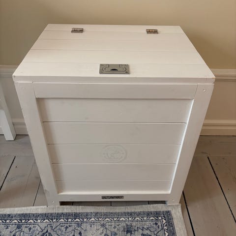 Cinas Classic förvaringbänk/dynbox i teak/vit. Locket är i teak med gumminlägg. Perfekt förvaring för kuddar, filtar mm då det inte blir instängt, eller på skyddad uteplats. Rymmer mycket! Är jättenöjd med den men säljer pga flytt.