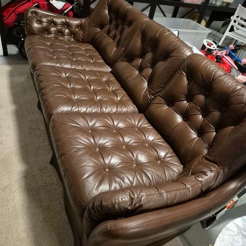 Svart soffa med schäslong och lös pall