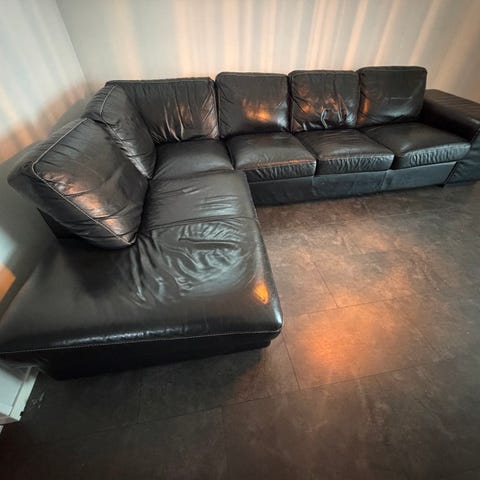 Svart Skinnsoffa 4-5 sits med schäslong