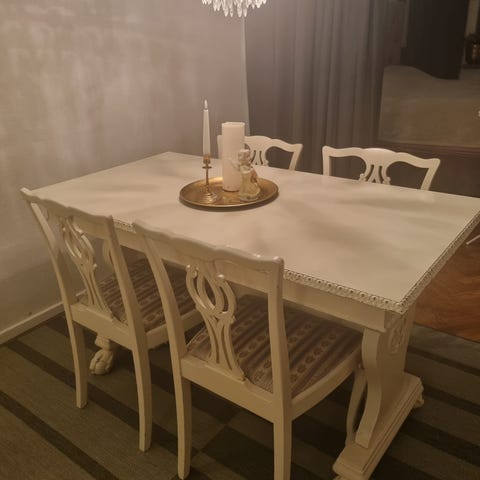 Trädgårdsbord och fyra stolar