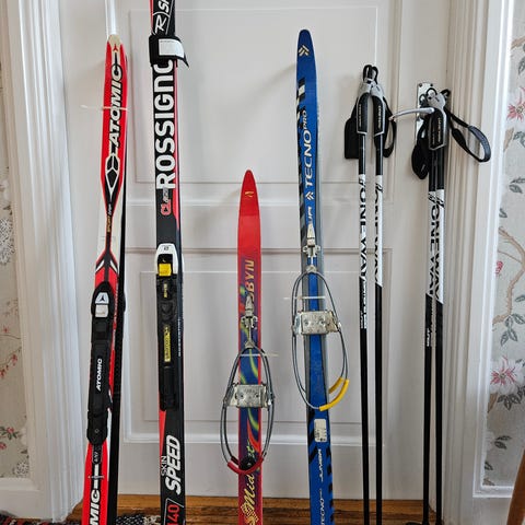 Längdskidor stavar och pjäxor