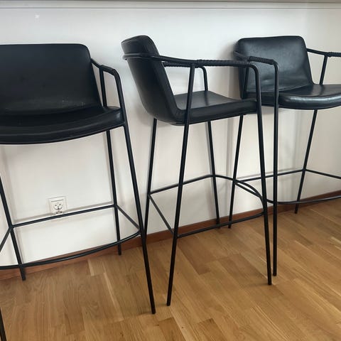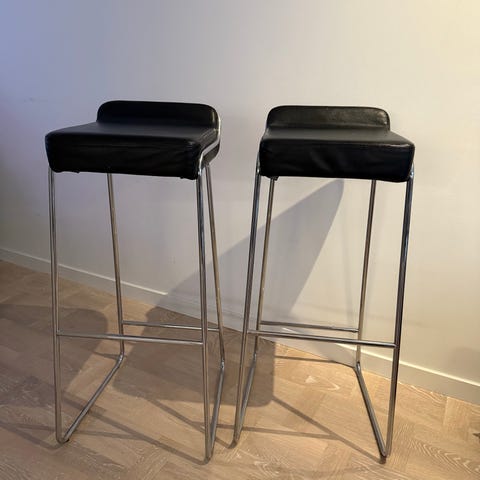 4 st mycket fina barstolar i svart betsad ask med rostfria ben.