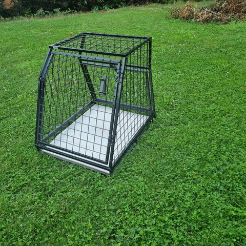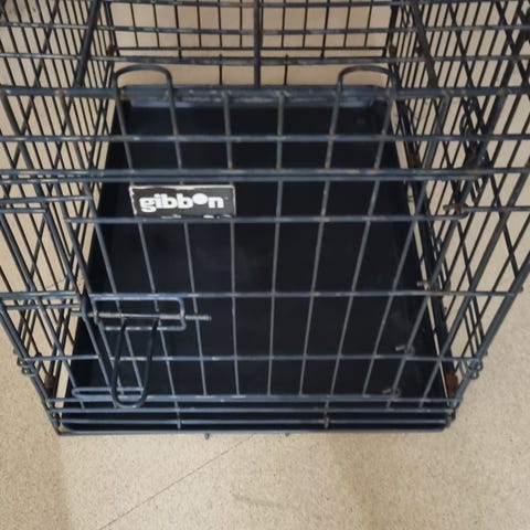 Buren har endast använts i drygt en månad sen växte vår valp ur den. Den är helt som ny. Måtten är 47,5x32,5x39cm och vikten 3,9. Galleravståndet är 35 mm. Den har en lucka på kortsidan med säkerhetslås och den är lätt att fälla ihop. Bottenlådan lätt att ta ur för rengöring.