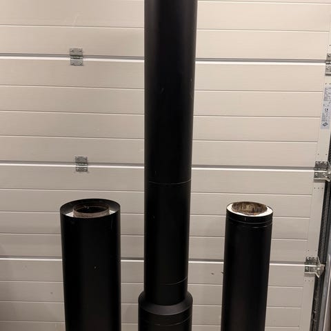 Ny skorstenshuv i svart plåt, är öppningsbar överdel för sotning. För mer info mejla Marcus
