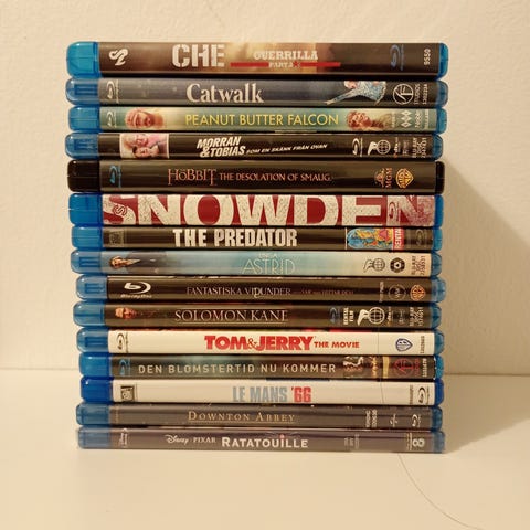 Samling av Blu-ray filmer inklusive titlar som Star Wars, Pirates of the Caribbean, The Hobbit, Sagan om ringen, Back to the Future, Ghostbusters, Die Hard och Beverly Hills Cop. De flesta filmerna är i Blu-ray format. Några enstaka i DVD format.