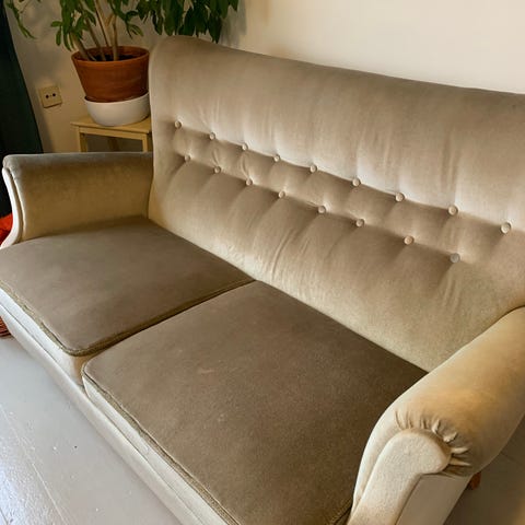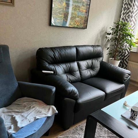 Har ingen info om soffan, lär vara äkta skin