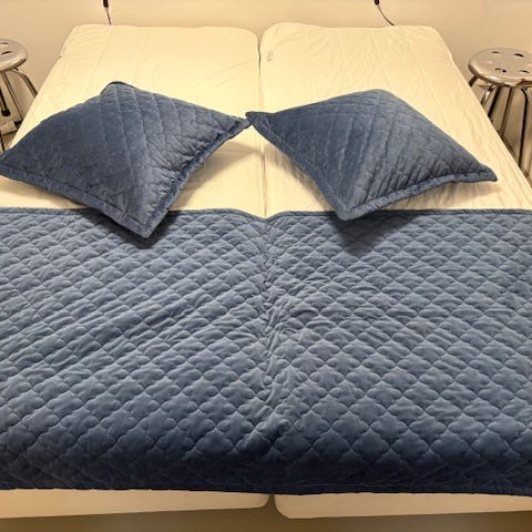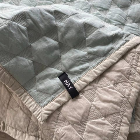 Hay textil överkast i mörkbrun färg med dekorativa sömmar. Passar som sängöverkast för att skydda och dekorera sängen.