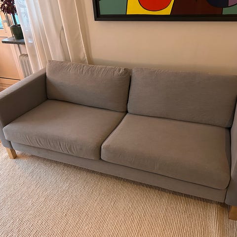 Super bra skick nytvättade kuddfodral. Klädseln är avtagbar och tvättbar, vilket gör soffan lätt att hålla fräsch. Super bekväm också!