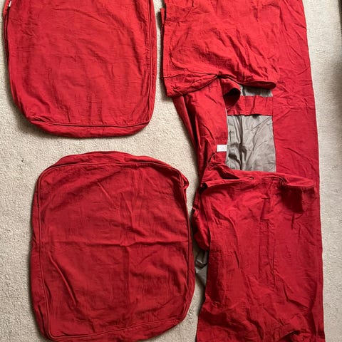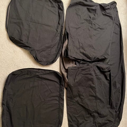 Beige soffklädsel ”Tallmyra” och vit standard soffklädsel till Ektorp tresistssoffa från IKEA i gott skick säljes för 500 kr totalt.