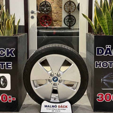 Komplett uppsättning 19-tums original BMW-fälgar till BMW i3, utrustade med friktionsdäck.