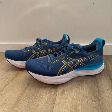 Modell: Dam löparskor ASICS GEL-KAYANO 32. Köpt för 2 199 kr, säljs för 1 500 samt ev frakt. (använt bara några timmar inomhus. Tyvärr passar inte modellen mitt nyopererade knä)