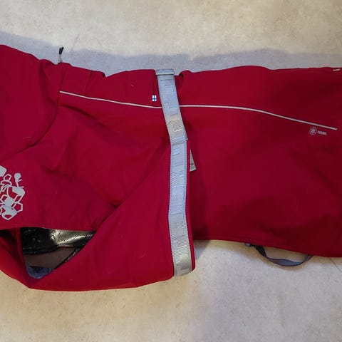 Hurtta colection regntäcke stl 50 använts fåtal gånger ena är att de inte finns några bensnören men annnars jätte fint skick