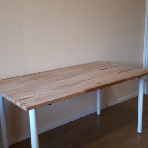 Bordet är i begagnat skick med normalt slitage. Det finns mindre tejpmärken på benen (se bild), men inget som påverkar funktion eller stabilitet.