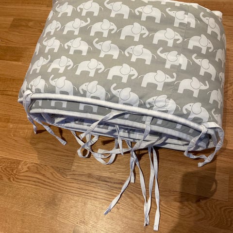 Mycket fint ekologiskt spjälsängsskydd från ”Rätt start”. Rosa med vita elefanter säljes.