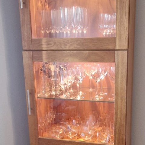 Fint vitrinskåp med 2 lådor. Köpt på Mio. Finns även köksbord i samma serie