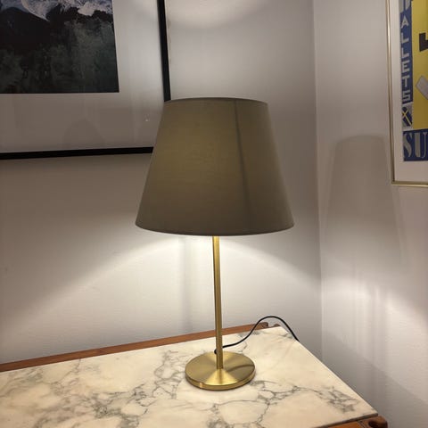 H&M Home bordslampa med plisserad lampskärm. Höjd ca 43 cm, lampskärm ca 38 cm i diameter. Hämtas av köpare.