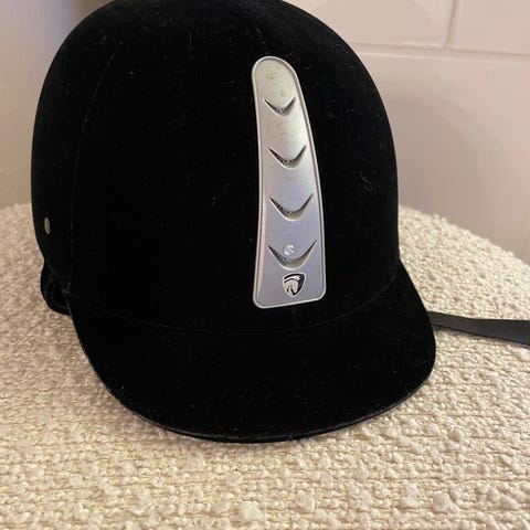 Svart ridhjälm HS barn i storlek M. 54-56. Detaljer med strass stenar.