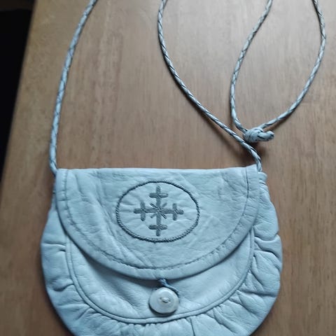 Skinnväska med tenntrådsbroderi