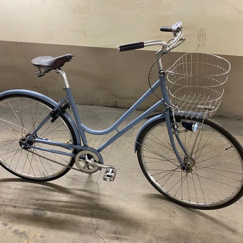 28" hjul. Ramstorlek 50 cm. Handbroms fram och fotbroms bak. Fast monterad stålkorg. Utrustad med brun lädersadel från Brooks samt läderklädda handtag. Cykeln har en ljusgrön ram.