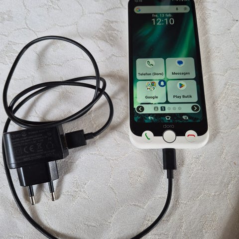 Köpt 1 augusti 2025, använda ca 3 veckor (mamma var van vid iPhone och kunde inte vänja sig vid Android). Klockarmbandet är förkortat för att passa en kvinna. Nya armband kan köpas på doro.com för 295 kr.