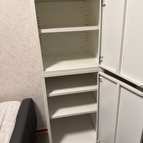 IKEA högskåp - vitt högblankt. Hyllplan i glas