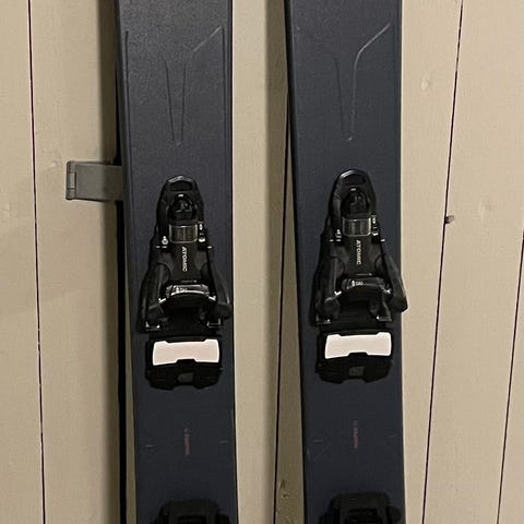 Ett par Bent Chetler 100 (188 cm) säljes tillsammans med Shift 13-bindningar samt stighudar Glidelite Mix från Black Diamond.