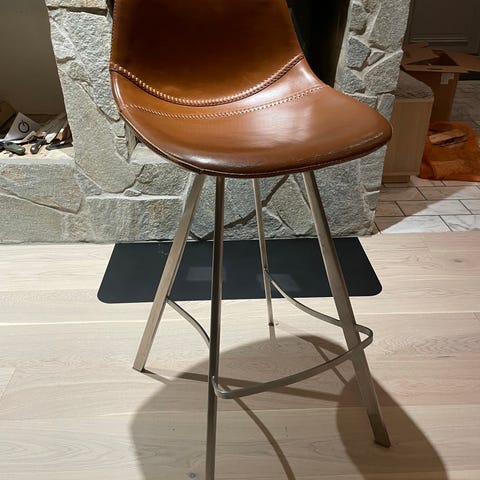 Två barstolar med sits i svart läder från Zanotta