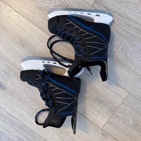 Spin barnskridskor i storlek 31- 33 med vit färg. Passar för ishockeysport och är utformade för barn.