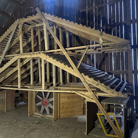 Stor komplett sädestork, monteras ner och fraktas bort av köpare, har inte använts på kanske 30 år